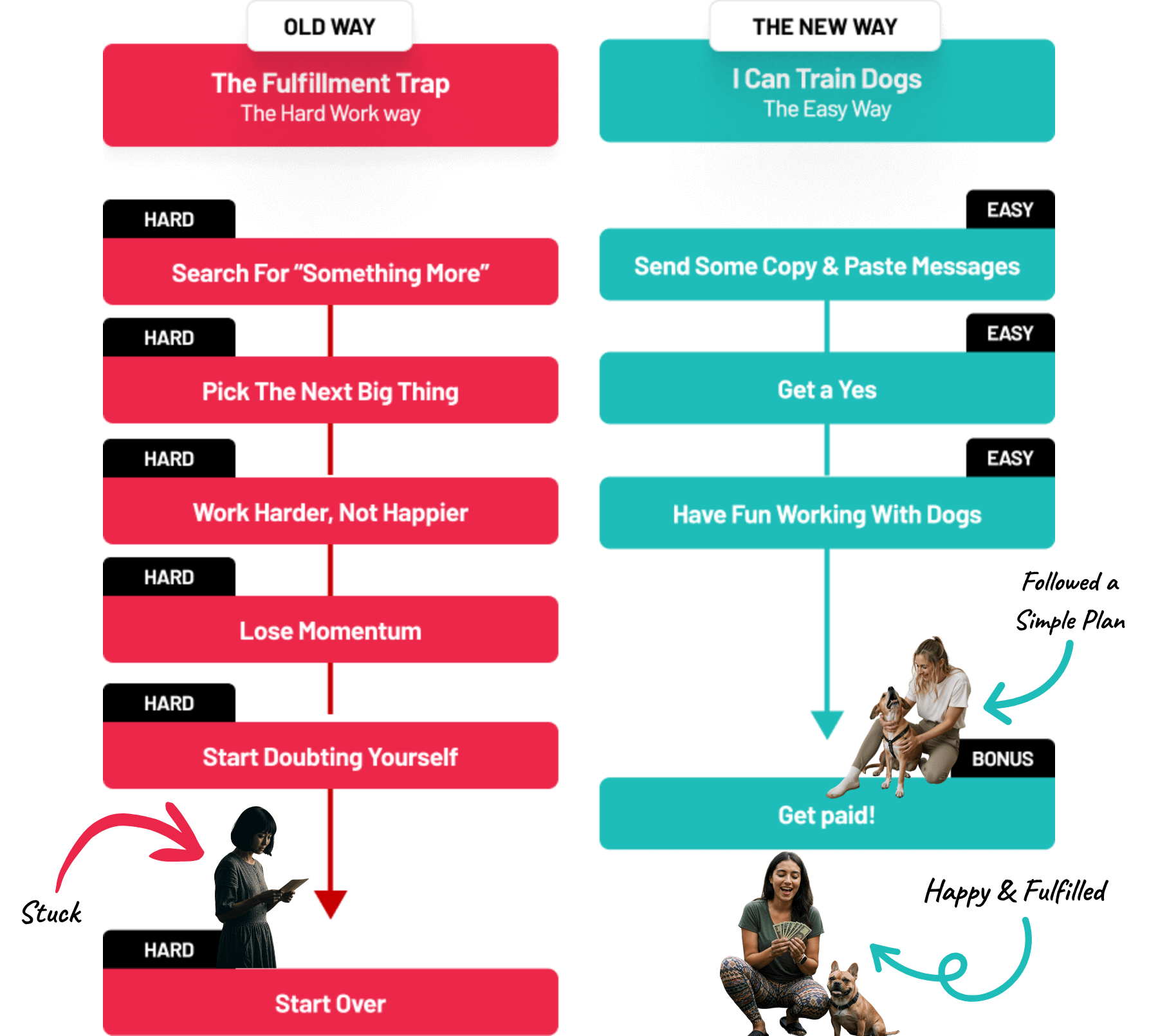 It gives you the exact structure to help dogs and families right away–without quitting your job, wasting months on trial and error, or spending thousands on certifications.