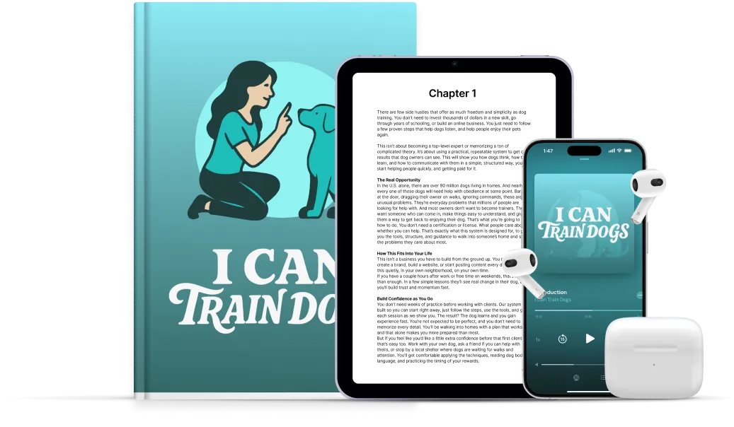 I Can Train Dogs is a step by step process that shows complete beginners how to earn bonus income working with dogs - doing something they love, without needing certifications, a business plan, or years of experience.